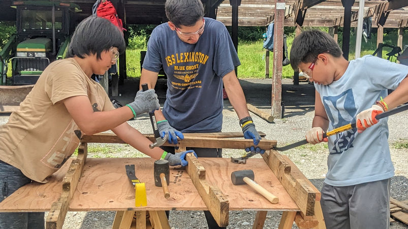 Stormed down red oak was milled and dried on site in 2020, the tables were designed and built for the Fresh Air Fund at the Sharpe Reservation in Beacon NY. At 10' and 12' the tables are more than capable to seat full campers and classes around to talk eat and learn together.
